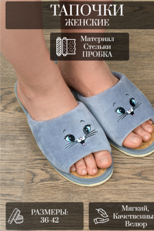 Легкие домашние женские тапочки с принтом кота от бренда "Lepilov" прекрасно подойдут для ежедневного ношения дома и на даче в любое время года. Стильную модель запросто можно предложить своим гостям, или взять с собой на отдых, в дорогу. А как приятно после тяжелого рабочего дня переобуться в тапочки женские домашние с комфортной посадкой по ноге! Наши тапочки- это сочетание стиля, качества и комфорта! Верхняя часть домашних тапок выполнена из качественного велюра, который легко пропускает воздух. В таких тапочках нога не потеет и не скользит. Тапочки домашние женские спасают от холодного и мокрого пола и подходят на стопу с любой полнотой и подъёмом! Стелька выполнена из качественной пробки, благодаря которой их очень комфортно носить как с носком, так и на босу ногу! Подошва изготовлена из ЭВА, это легкий, упругий, эластичный и износостойкий материал. Все швы качественно обработаны производителем. Наши домашние тапки подойдут для носки в любое время года: в осенний, весенний, летний и зимний период! Классическая модель будет удобна в качестве домашних комнатных, дачных или рабочих. Широкий размерный ряд позволяет найти свою пару удобной обуви каждой девушке и женщине. Наслаждайтесь каждым моментом вместе с нами!