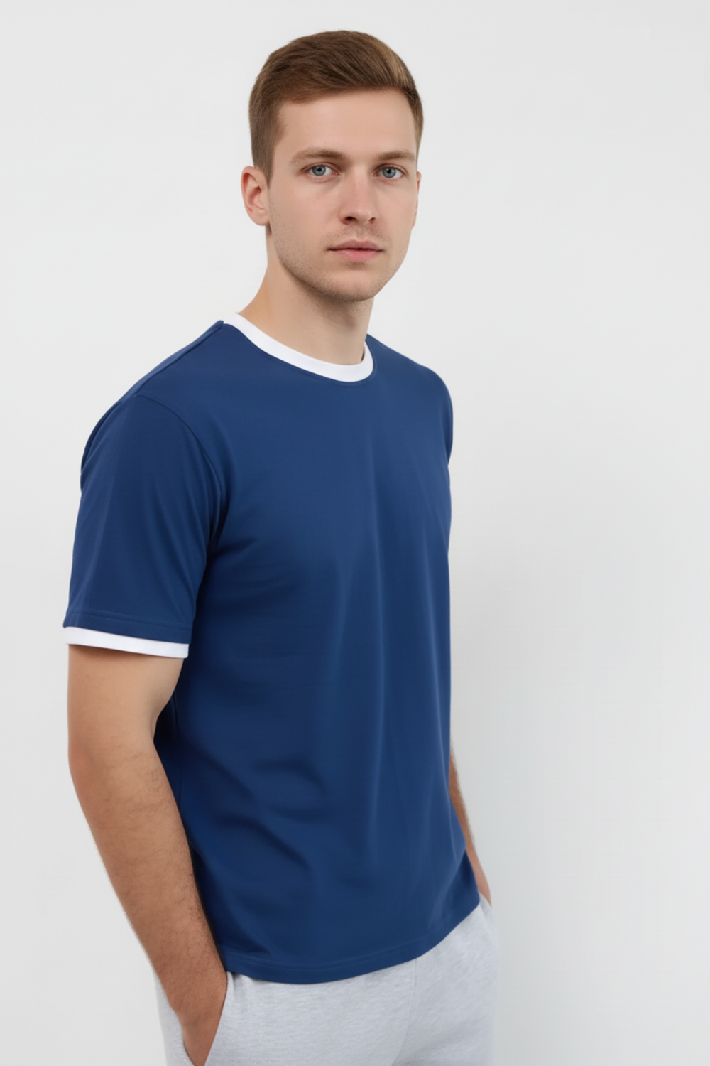 Универсальные мужские футболки прямого кроя с короткими рукавами и классическим круглым воротником. Отличительной чертой моделей являются контрастные белые окантовки на вороте и манжетах, благодаря чему футболки выглядят современно и стильно. Изделия выполнены из мягкой и комфортной ткани, приятной к телу, что обеспечивает удобство при повседневной носке. Такие футболки подходят как для активного отдыха, так и для городского стиля.