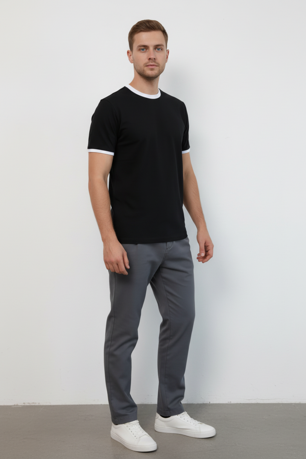 Универсальные мужские футболки прямого кроя с короткими рукавами и классическим круглым воротником. Отличительной чертой моделей являются контрастные белые окантовки на вороте и манжетах, благодаря чему футболки выглядят современно и стильно. Изделия выполнены из мягкой и комфортной ткани, приятной к телу, что обеспечивает удобство при повседневной носке. Такие футболки подходят как для активного отдыха, так и для городского стиля.