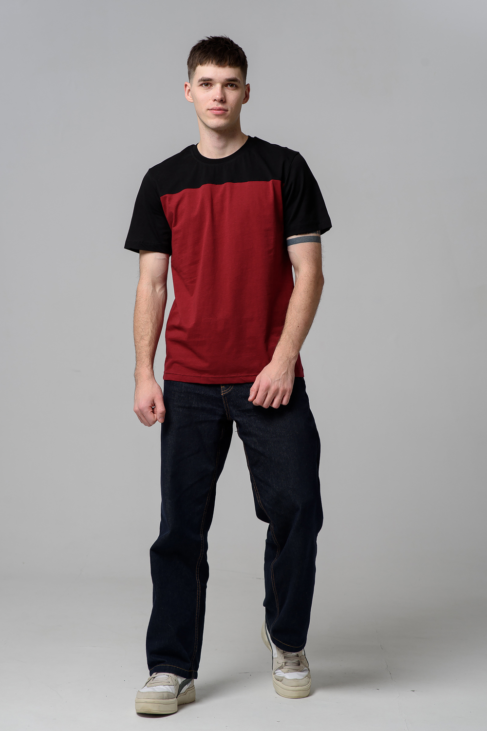 Современные мужские футболки прямого кроя, выполненные из мягкой и приятной на ощупь ткани. Двухцветный дизайн с контрастной вставкой на плечах и рукавах придаёт моделям стильный и динамичный вид. Классический круглый вырез горловины обеспечивает комфорт посадки. Идеальный выбор для повседневного гардероба, легко сочетаются с джинсами и брюками, подойдут как для активного отдыха, так и для городской прогулки.