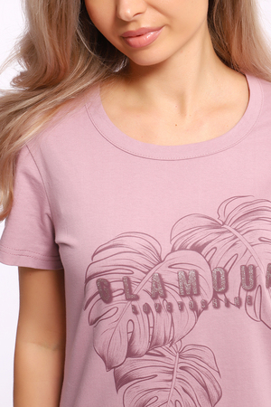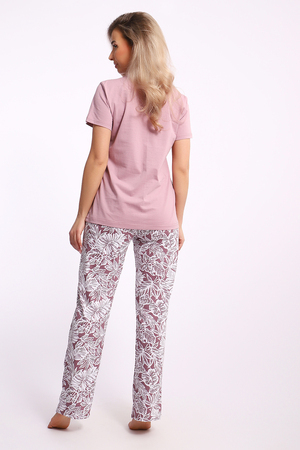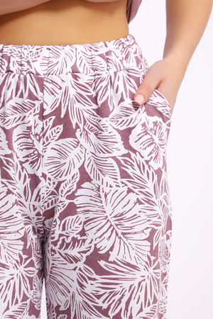 Костюм футболка+ брюки. Изумительно нежное сочетание цвета какао на футболке и растительного рисунка брюк. Натуральный хлопок.