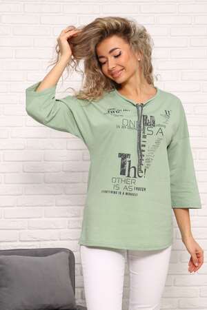 Туника женская свободного кроя со шнурком на горловине и печатью на передней полочке.