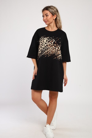Туника женская Oversize с интересным принтом для дома и сна, свободная, прямая, классическая из хлопка, незаменимая и удобная повседневная одежда. Ткань кулирка пенье, плотность 160 г.
