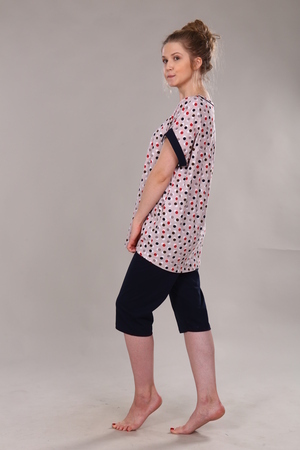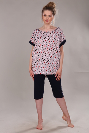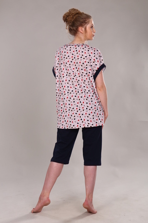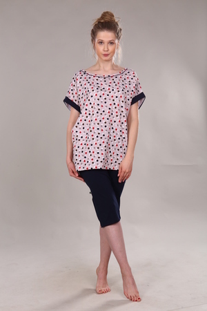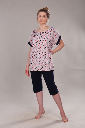 Домашний костюм с удлиненной футболкой с коротким рукавом и бриджами с боковыми карманами.