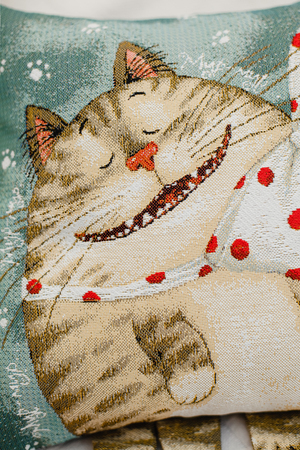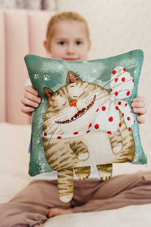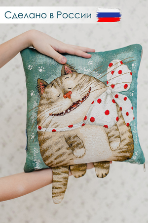 ВАЖНО размер может не много отличаться +- 3 см!!!!! Односторонняя наволочка декоративная с ушками размером 32х32 см(+-3см). У наволочки гобеленовой молния находиться в нижнем шве изделия. Уход - машинная стирка при 30 градусах на деликатном режиме с закрытой молнией. Не смешивать при стирке с другими тканями. Утюжить на среднем температурном режиме. При правильном уходе гобеленовая наволочка декоративная прослужит долгие годы в неизменном состоянии: не линяет, не дает усадку. Качественная, удобная в использовании, устойчивая к истиранию красок и деформациям при стирке, такая декоративная наволочка гобеленовая будет долгие годы радовать красотой и эстетичностью! Обратная сторона наволочки из однотонной рогожки. Прекрасный рисунок котика на наволочке декоративной гармонично дополнит самый изысканный интерьер, привлекая внимание своей теплотой и оригинальностью. Мягкий материал необычайно приятен и прочен. Гобеленовое изделие так же подойдет в качестве ПОДАРКА внучке, дочке или племяннице, так как подушка игрушка)