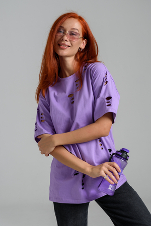 Красивая и необычная хлопковая футболка дополнена оригинальными разрезами. Натуральный состав трикотажа позволяет коже дышать и подарит ощущение комфорта. Идеальный выбор для создания модных и ярких образов!