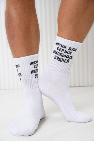 Комплект мужских носков 2 пары. Широкая резинка. По верхней части носка надпись "Носки для серых школьных будней"
