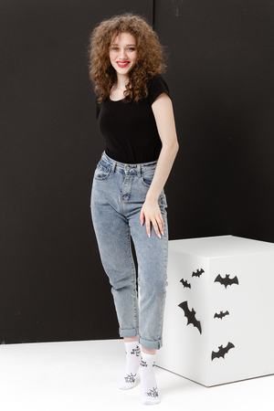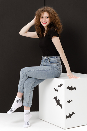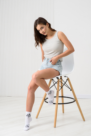 Удобные женские носки с надписью. Отличный выбор для девушек в качестве сувенира на 8 марта. Носки средней длины легко впишутся в повседневный лук. Прочные, из натурального хлопка с добавлением эластана, не выстирываются и не скатываются. Удобная широкая резинка.