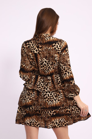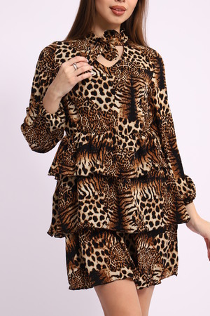 Леопардовый принт уже давно стал классикой в мире моды, и наше платье с воланами — не исключение. Этот смелый и дерзкий узор добавит вашему образу нотки экзотики и привлечёт взгляды. Благодаря использованию качественных материалов, принт останется ярким и насыщенным даже после многих стирок.