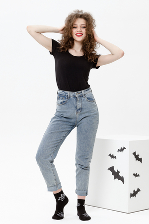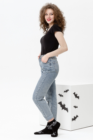 Удобные женские носки с надписью. Отличный выбор для девушек в качестве сувенира на 8 марта. Носки средней длины легко впишутся в повседневный лук. Прочные, из натурального хлопка с добавлением эластана, не выстирываются и не скатываются. Удобная широкая резинка.
