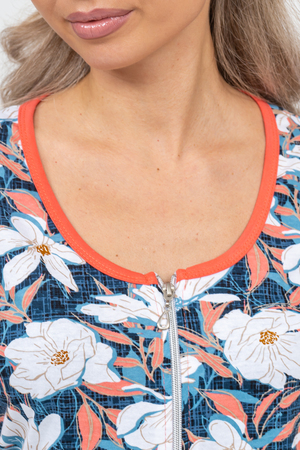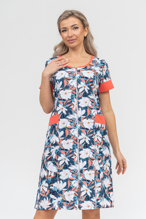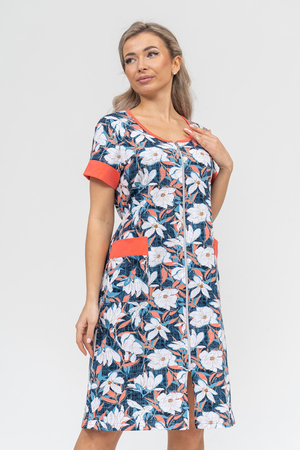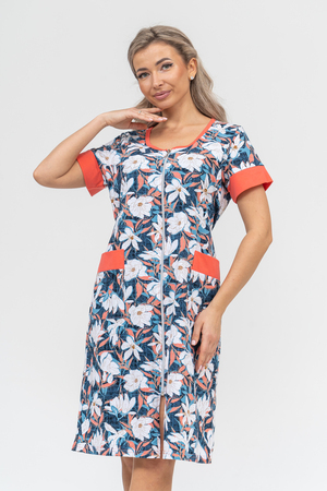Женский халатик на молнии – самая распространенная и универсальная одежда для домашнего отдыха и хозяйственных хлопот. После трудного рабочего дня, приходя домой, первым делом хочется переодеться. И данная модель это идеальный вариант среди представительниц прекрасной половины человечества. Модель выполнена из 100% хлопчатобумажной ткани. Халат так же дополняет яркая отделка по рукавам и карманам. А пояс на линии талии поможет легко смоделировать женственный силуэт и при этом Вы будете чувствовать себя легко и непринуждённо. Данная модель прекрасно подойдёт для дома, дачи и отдыха, создавая по-настоящему яркий образ и хорошее настроение!