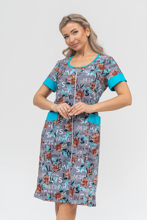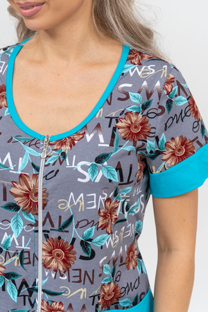 Женский халатик на молнии – самая распространенная и универсальная одежда для домашнего отдыха и хозяйственных хлопот. После трудного рабочего дня, приходя домой, первым делом хочется переодеться. И данная модель это идеальный вариант среди представительниц прекрасной половины человечества. Модель выполнена из 100% хлопчатобумажной ткани. Халат так же дополняет яркая отделка по рукавам и карманам. А пояс на линии талии поможет легко смоделировать женственный силуэт и при этом Вы будете чувствовать себя легко и непринуждённо. Данная модель прекрасно подойдёт для дома, дачи и отдыха, создавая по-настоящему яркий образ и хорошее настроение!