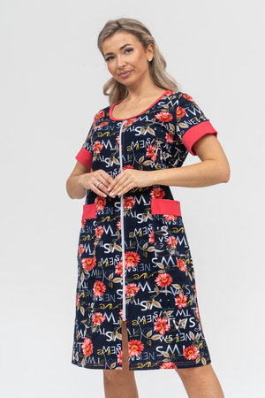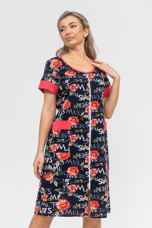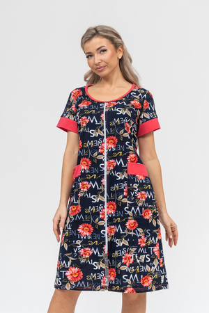 Женский халатик на молнии – самая распространенная и универсальная одежда для домашнего отдыха и хозяйственных хлопот. После трудного рабочего дня, приходя домой, первым делом хочется переодеться. И данная модель это идеальный вариант среди представительниц прекрасной половины человечества. Модель выполнена из 100% хлопчатобумажной ткани. Халат так же дополняет яркая отделка по рукавам и карманам. А пояс на линии талии поможет легко смоделировать женственный силуэт и при этом Вы будете чувствовать себя легко и непринуждённо. Данная модель прекрасно подойдёт для дома, дачи и отдыха, создавая по-настоящему яркий образ и хорошее настроение!