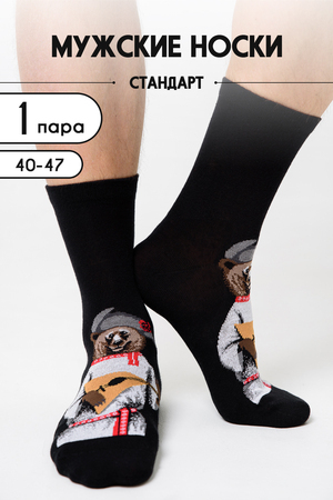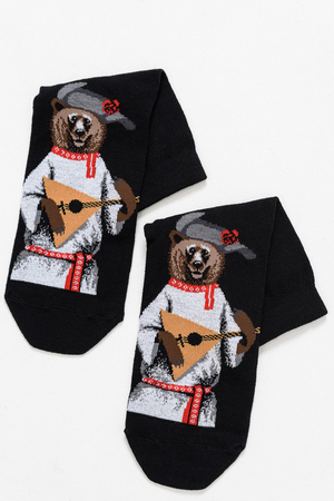 Стилизованные мужские носки с русскими мотивами: медведь в ушанке с балалайкой. Комплект 1 пара.