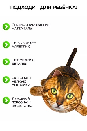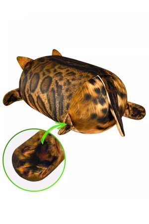 Внутри изделия — наполнитель из шариков антистресс (пенополистирола), что делает её успокаивающей игрушкой. Позволяет расслабиться после тяжёлого дня. Ребёнок придумает много игр днём, а вечером использует как обнимашку. Можно взять с собой в путешествие: в машину, поезд — будет отвлекать во время поездки. Поможет отдохнуть: просто положите под голову и наберитесь сил после долгой дороги.