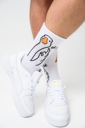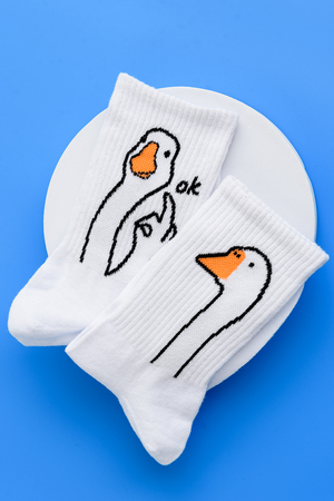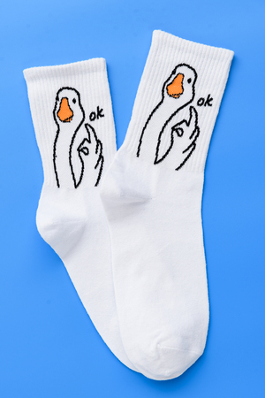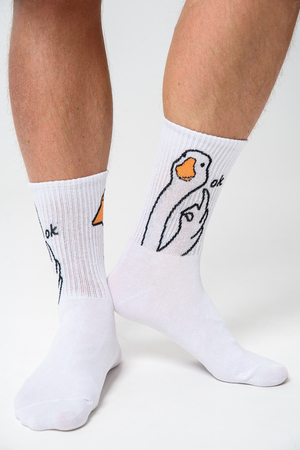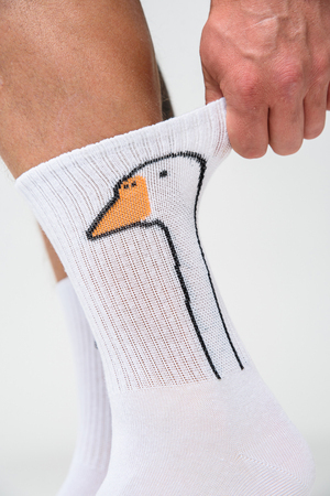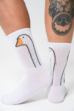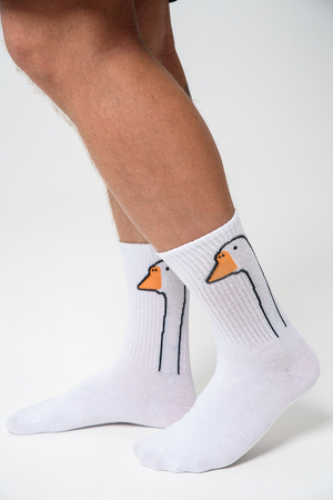 Трендовые мужские носки с гусем. Эта птица покорила сердца многих людей. Комплект 1 пара с изображением популярного гуся.