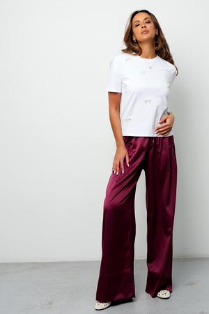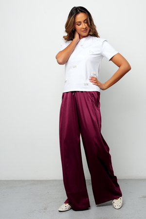Бренд Raposa представляет Вашему вниманию классические женские брюки палаццо в стиле олд мани. Брюки бордовые женские больших размеров, 54-56 станут идеальным дополнением к вашему базовому гардеробу и будут прекрасно сочетаться с различным верхом и аксессуарами. Нарядные, они подойдут для любого случая, будь то офис, вечернее или праздничное мероприятие. Идеальны для высоких женщин. Атласные брюки, слаксы, имеют широкий размерный ряд до 58-60 размера для полных женщин плюс сайз и для беременных. Особенности модели: длинные, свободные, прямой клеш от бедра, красивая линия талии. Брюки струящиеся женские стильно облегают фигуру, имеют корректирующий эффект, стройнят, визуально вытягивая силуэт, и не сковывают движения, позволяя чувствовать себя комфортно на протяжении всего дня. Благодаря эластичной эргономичной резинке на талии широкие штаны, шаровары, обеспечивают максимальное удобство и идеальную посадку на любой рост. Гладкий материал атлас придаст вашему наряду юбка-брюки блестящий и праздничный вид. Брюки палаццо женские в пижамном стиле выполнены из высококачественного материала – атлас, мягкого и приятного на ощупь, который, подарит дополнительный лоск и привлечет восхищенные взгляды окружающих. Брюки офисные женские, трубы, легко комбинировать с разной одеждой для создания интересных стильных образов. Эти роскошные, универсальные и комфортные брюки подойдут на любой сезон и будут уместны на любое торжество или вечеринки 2025: День рождения, корпоратив, для женщин и девушек подростков, предлагая великолепную посадку благодаря удобному покрою. Повседневные или деловые образы с этими брюками металлик премиум качества будут всегда актуальны благодаря современному y2k тренду. Классные штанишки подходят для школьных выходов для девочки, для выпускных балов или для танцев. Наряд будет интересно смотреться в тематической фотосессии или как весенние и летние брюки. Эти брючки - настоящий подарок для ценителей красоты, женственности и элегантности.