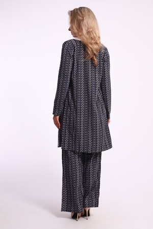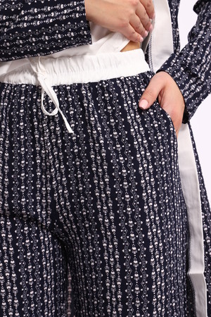 Продолжая тему комфорта, наш домашний костюм включает свободные брюки на резинке. Этот элемент обеспечит полную свободу движений и идеально подойдет для отдыха в домашних условиях. Едва ли найдется более удобный предмет гардероба для долгих вечеров с книгой или просмотра любимых фильмов. Брюки украшены аккуратными швами и тщательно продуманным кроем, подчеркивающим элегантность и стиль.