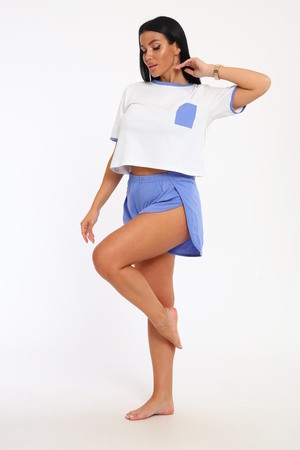 Женская пижама — домашний комплект из 100% хлопка качества пенье. Одежда, в котором так приятно завтракать по утру не спеша, выпив чашечку кофе или чая. Можно носить в любое время года - весной, летом, зимой и осенью, демисезон. Она будет прекрасно смотреться на высоких и невысоких, худых и полных. Удобный комплект. Пижама женская с шортами на резинке — летняя модель свободного кроя со стильным и модным принтом на футболке. Ночная пижамка не имеет мелких деталей: пуговиц, кнопок или замков, поэтому обеспечит здоровый, крепкий сон. Натуральный трикотаж не сдавливает тело, обладает оптимальной терморегуляцией, не вызывает аллергии, дает воздуху свободно циркулировать. Универсальный комплект подходит для девушек подростков и женщин. Отдыхайте с удовольствием. В выходной костюм для сна можно носить как верхнюю одежду, чтобы создать пижамное настроение в мягкой и милой атмосфере дома. Красивая и легкая пижама будет еще комфортнее, если купить её для себя на размер больше, а подростковый подарок подбирать по таблице размеров — тогда сюрприз точно будет приятным. Костюм отлично подойдет для прогулок, в путешествии, на дачу. Стильный наряд. Летний костюм женский украшен надписью и рисунком на майке с коротким рукавом. Удобные короткие шорты оформлены боковыми карманами, в которых можно держать руки и носить нужные мелочи. Стильная ткань шорт с рисунком дополняет принт на свободной футболке. Демисезонная двойка делится на верх и низ, что позволяет легко комбинировать комплекты, управляя своим «сонным микроклиматом». Цветовое сочетание верха и низа, отсутствие цветочных принтов или слишком наивных паттернов делает этот модный подарочный набор достаточно сдержанным и лаконичным. Молодежная пижама — отличный подарок для жены или подруги на 8 Марта или День Влюбленных. У нас проходят акции и распродажи, вы можете купить наши товары со скидкой! Уход: бережная стирка при t 30, без отжима, гладить при низкой t, не отбеливать, допускается отпаривание