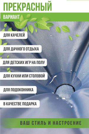 Размер: Диаметр подушки 60 см, что делает ее универсальной и подходящей для различных целей – от использования на садовых качелях до декорирования интерьера.