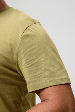 Футболка прямая, свободная, средней длины, с округлой горловиной. Рукав короткий. Горловина обработана эластичной обтачкой. Размер на вшивной этикетке возможен двойной, ориентируйтесь по меньшему размеру. В цвете изумруд возможен разнотон.