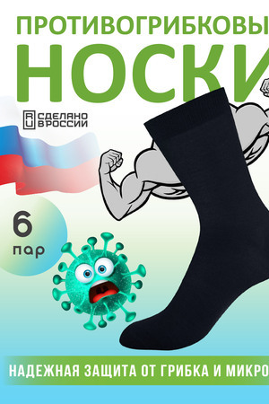 Комплект противогрибковых носков “Гигиена грибок классик” – это идеальное сочетание комфорта, защиты и долговечности. Набор включает 6 пар черных носков, созданных для обеспечения здоровья и комфорта ваших ног.