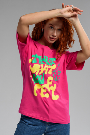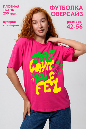 Женская футболка оверсайз — это идеальный выбор для девушек, которые любят сочетать комфорт и стиль. Стильная и качественная, она доступна в любом размере, включая большой до 56. Свободный крой подойдет в том числе и для беременных женщин. Высокие стандарты качества делают её универсальным элементом гардероба, подходящим для создания модных повседневных образов. Она идеальна для взрослых и подростков, предпочитающих спортивную и яркая одежду. Высокая плотность ткани 200гр/куб.м.