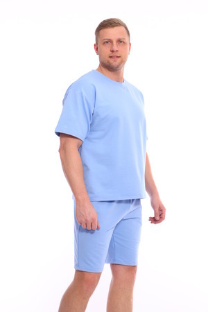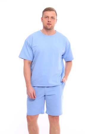 Комплект состоит из футболки оверсайз и шорт. Футболка свободного кроя, с коротким рукавом, круглым вырезом горловины. Шорты прямого кроя с карманами, на поясе шнур для регулировки .