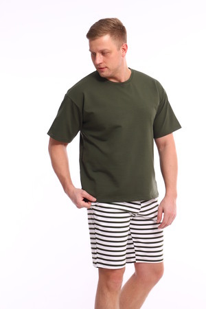 Комплект состоит из футболки оверсайз и шорт. Футболка свободного кроя, с коротким рукавом, круглым вырезом горловины. Шорты прямого кроя с карманами, на поясе шнур для регулировки .