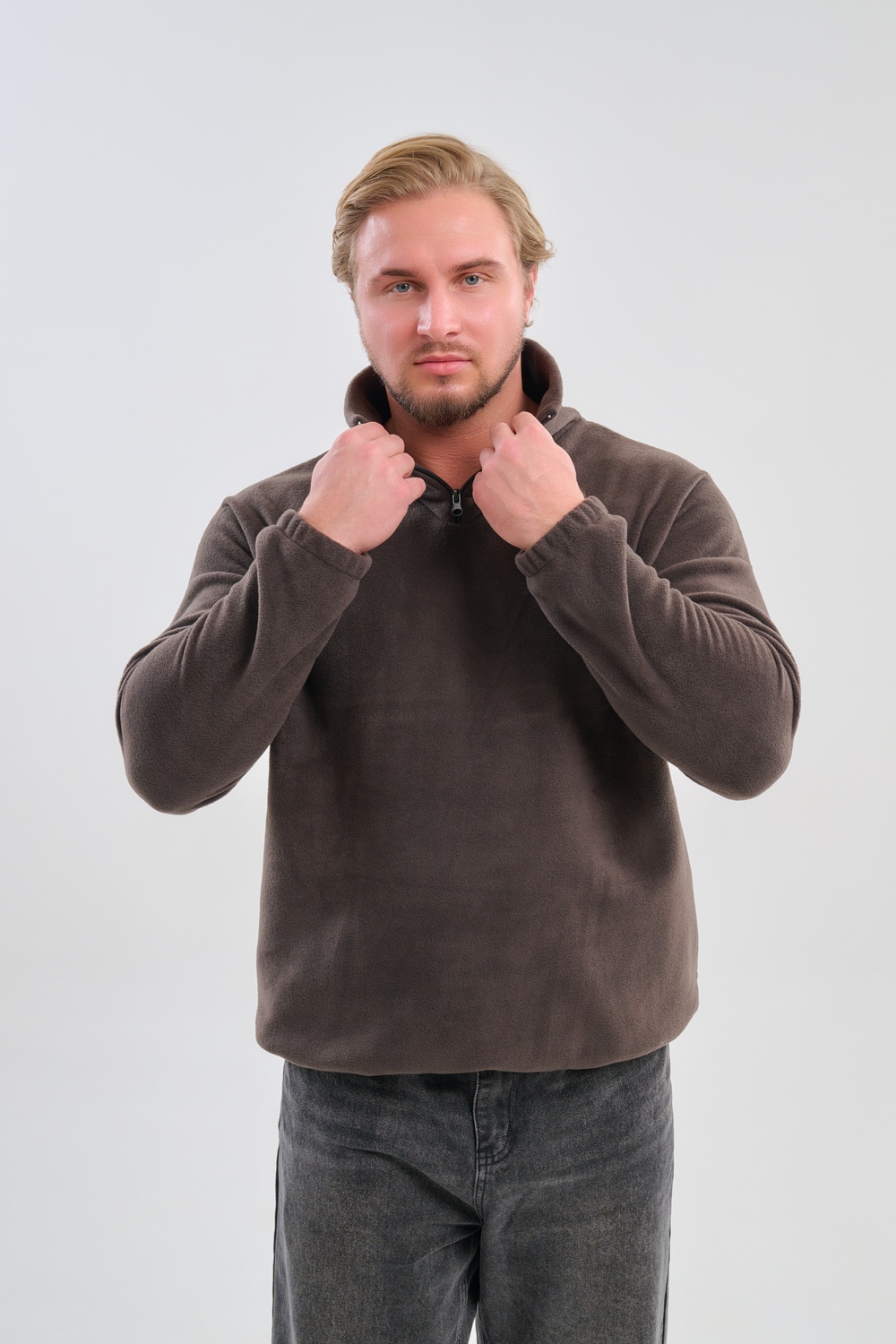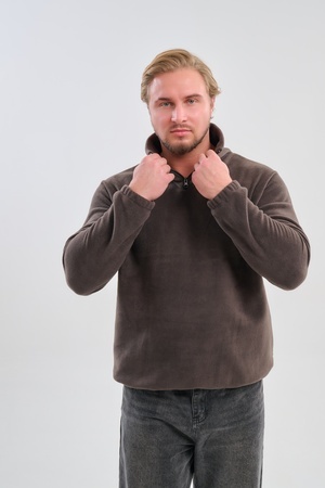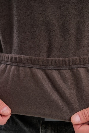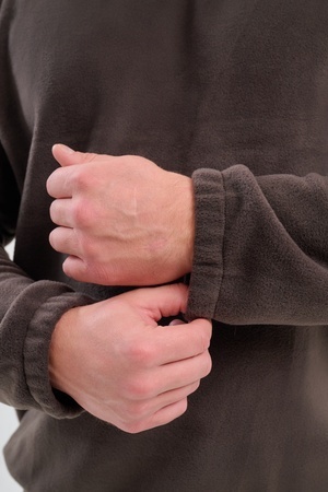 Мужская толстовка выполнена из приятного на ощупь флиса из 100% полиэстера, обладающего отличными теплоизоляционными свойствами и обеспечивающего максимальный комфорт при любых погодных условиях. Особенность модели заключается в том, что по низу изделия и на манжетах вшиты резинки, обеспечивающие плотное прилегание, сохранение формы изделия и защиту от проникновения холода.