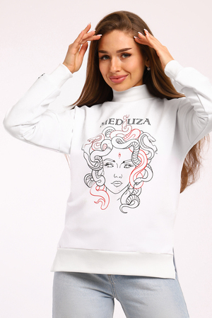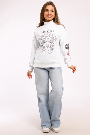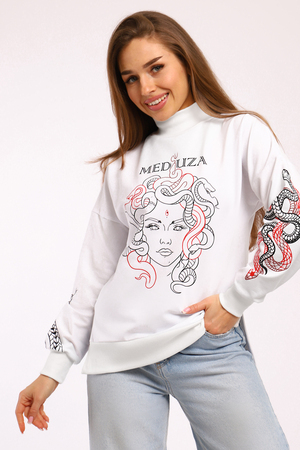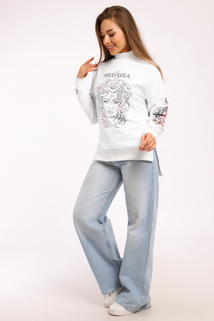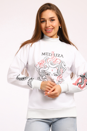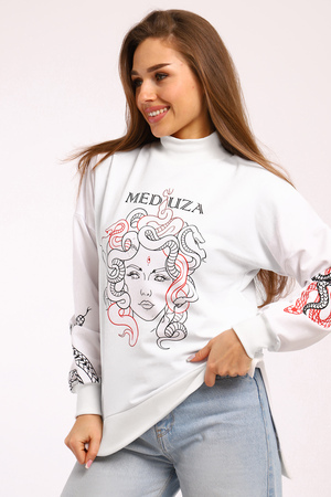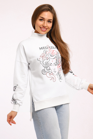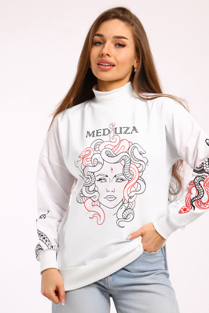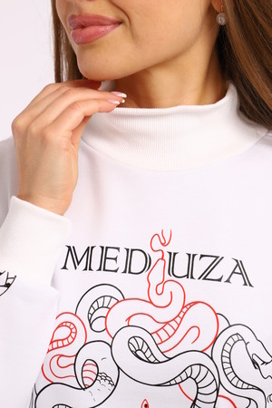 Толстовка с принтом KEM – это стильное и комфортное решение для повседневного образа. Модель выполнена из мягкой и приятной к телу ткани, состоящей из 71% хлопка, 24% полиэстера и 5% лайкры, что обеспечивает свободу движений и удобство в носке. Оригинальный принт медуза на толстовке добавляет индивидуальности и яркости вашему стилю. Благодаря разрезам по бокам толстовка прекрасно садится на фигуру, подчеркивая ее достоинства. Модель без капюшона и застежки, что делает ее еще более удобной для носки.