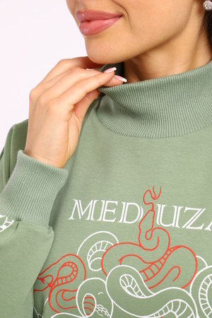 Толстовка с принтом KEM – это стильное и комфортное решение для повседневного образа. Модель выполнена из мягкой и приятной к телу ткани, состоящей из 71% хлопка, 24% полиэстера и 5% лайкры, что обеспечивает свободу движений и удобство в носке. Оригинальный принт медуза на толстовке добавляет индивидуальности и яркости вашему стилю. Благодаря разрезам по бокам толстовка прекрасно садится на фигуру, подчеркивая ее достоинства. Модель без капюшона и застежки, что делает ее еще более удобной для носки.