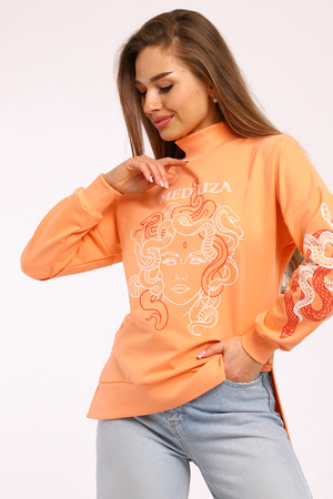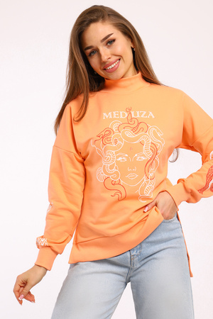 Толстовка с принтом KEM – это стильное и комфортное решение для повседневного образа. Модель выполнена из мягкой и приятной к телу ткани, состоящей из 71% хлопка, 24% полиэстера и 5% лайкры, что обеспечивает свободу движений и удобство в носке. Оригинальный принт медуза на толстовке добавляет индивидуальности и яркости вашему стилю. Благодаря разрезам по бокам толстовка прекрасно садится на фигуру, подчеркивая ее достоинства. Модель без капюшона и застежки, что делает ее еще более удобной для носки.