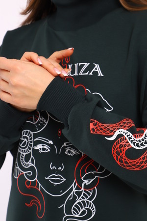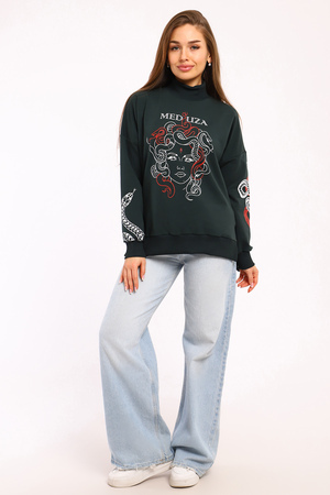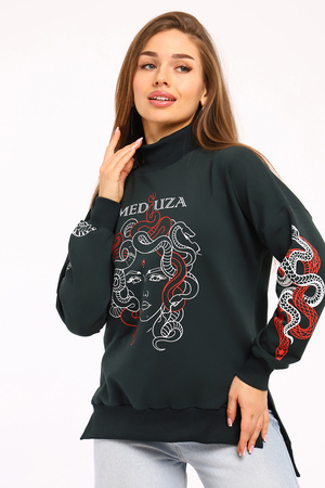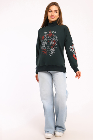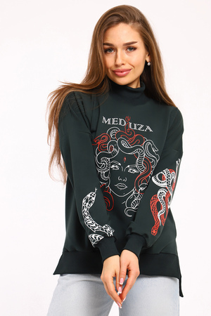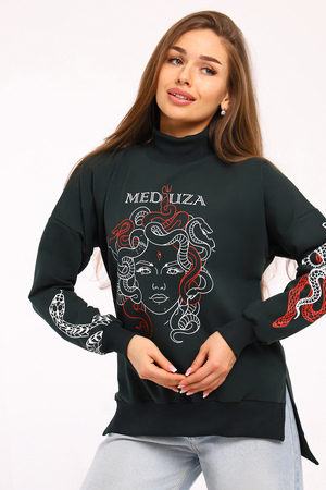 Толстовка с принтом KEM – это стильное и комфортное решение для повседневного образа. Модель выполнена из мягкой и приятной к телу ткани, состоящей из 71% хлопка, 24% полиэстера и 5% лайкры, что обеспечивает свободу движений и удобство в носке. Оригинальный принт медуза на толстовке добавляет индивидуальности и яркости вашему стилю. Благодаря разрезам по бокам толстовка прекрасно садится на фигуру, подчеркивая ее достоинства. Модель без капюшона и застежки, что делает ее еще более удобной для носки.