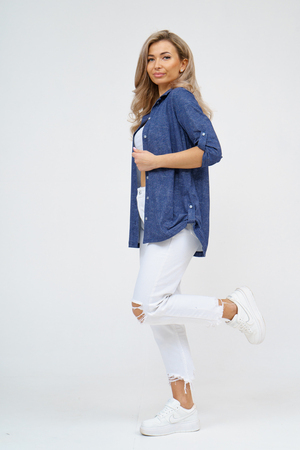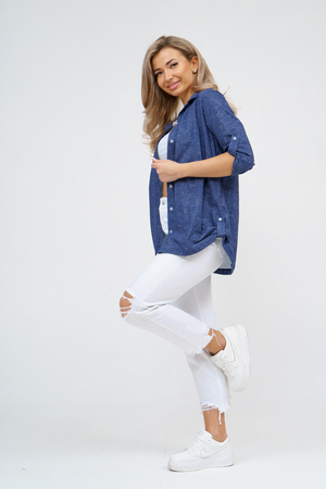 Женская стильная туника - рубашка выполнена из 100% хлопчатобумажного полотна. Новый дизайн и отличное качество делает изделие модным, легким и приятным на ощупь, не сковывает движения, поэтому отлично подойдет как для дома и работы, так и для повседневной носки. Модель дополняет рубашечный воротник, паты и планка с расстёгивающимися пуговицами, делая её более комфортной. Женская свободная рубашка не сковывает движения, поэтому отлично подойдет будущим мамам, беременным женщинам и кормящим. Расстёгивающаяся планка сделает кормление малыша удобным и комфортным, а за счет качественного хлопкового трикотажа еще и безопасным и экологичным. Мы специально разработали рубашку для женщин большого размера. Большие размеры любят и подростки, которые предпочитают вещи оверсайз (oversize). Рубашка женская - это базовая вещь в гардеробе девушки или женщины, является идеальным вариантом для путешествий. Удлиненную рубашку можно носить дома и в качестве повседневной одежды.