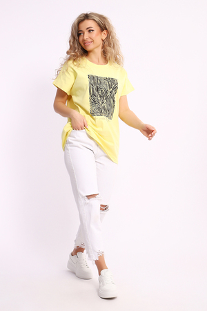 Стильная женская футболка прямого кроя, сшита в модном стиле cversize. Футболка представлена в ярких летних расцветках, которые позволят вам выделяться из толпы. Полочка декорирована ярким принтом, который придает изделию особый шик . Универсальная и нарядная модель футболки отлично подойдет для любого образа и станет необходимой вещью в вашем гардеробе наравне с повседневными белыми, черными футболками.