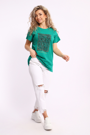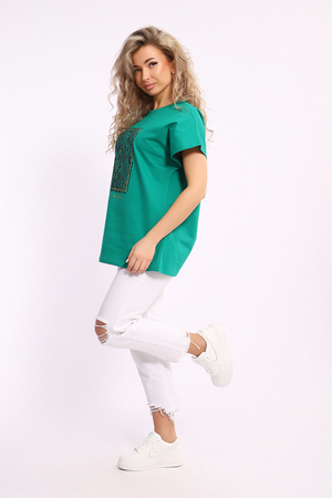 Стильная женская футболка прямого кроя, сшита в модном стиле cversize. Футболка представлена в ярких летних расцветках, которые позволят вам выделяться из толпы. Полочка декорирована ярким принтом, который придает изделию особый шик . Универсальная и нарядная модель футболки отлично подойдет для любого образа и станет необходимой вещью в вашем гардеробе наравне с повседневными белыми, черными футболками.