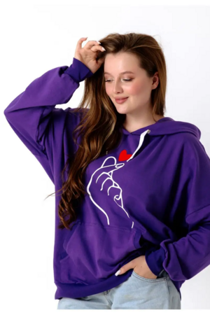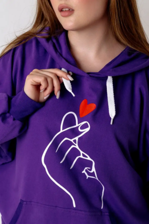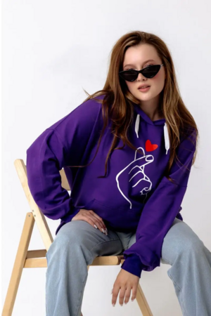 Жест, показываемый пальчиками на груди толстовки - корейский жест, ставший популярным во всем мире! Этот простой жест означает "Я Тебя Люблю". О нем знают все, кто интересуется культурой Кореи, фильмами, Дорамами, так называются корейские любовные сериалы, а так же современной корейкой музыкой, например, всемирно известной группой BTS. Подобная толстовка замечательный подарок для тех кто знает об этом жесте, и тем, кто Вам симпатичен! Признайтесь в любви по-корейски. Толстовка их тонкого дышащего футера 2-хнитки, не создает ощущения запаренности. Худи с двойным большим капюшоном, не слишком теплая, Идеально носить под куртку, безрукавку или косуху, а так же при долгом пребывании в помещениях. Не слишком плотная, но при этом достаточно теплая. Так же можно носить с шортами или тонкими брючками, джинсами.