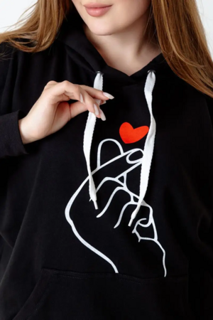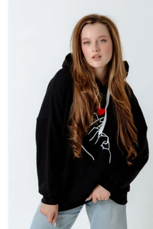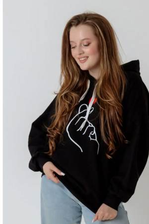 Жест, показываемый пальчиками на груди толстовки - корейский жест, ставший популярным во всем мире! Этот простой жест означает "Я Тебя Люблю". О нем знают все, кто интересуется культурой Кореи, фильмами, Дорамами, так называются корейские любовные сериалы, а так же современной корейкой музыкой, например, всемирно известной группой BTS. Подобная толстовка замечательный подарок для тех кто знает об этом жесте, и тем, кто Вам симпатичен! Признайтесь в любви по-корейски. Толстовка их тонкого дышащего футера 2-хнитки, не создает ощущения запаренности. Худи с двойным большим капюшоном, не слишком теплая, Идеально носить под куртку, безрукавку или косуху, а так же при долгом пребывании в помещениях. Не слишком плотная, но при этом достаточно теплая. Так же можно носить с шортами или тонкими брючками, джинсами.