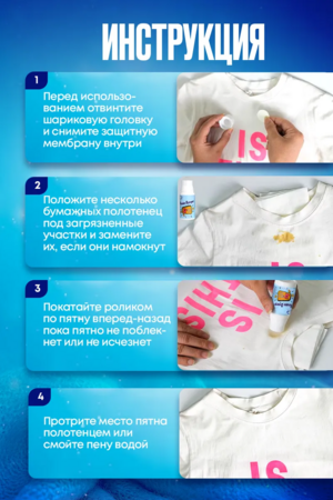 Роликовый очиститель предназначен для эффективного и быстрого удаления загрязнений с различных типов тканей. Его формула основывается на системе био-энзимов, и все компоненты являются биологически разлагаемыми. С помощью удобного шарикового аппликатора можно избавиться как от свежих, так и от старых пятен, таких как жир, масло, кетчуп, фрукты, кофе и трава, без необходимости дополнительной стирки. Он не влияет на структуру ткани. Удобный и практичный, легко помещается в сумке, что делает его полезным в поездках, командировках и офисе. Важно учитывать меры предосторожности: не применять на шелке, шерсти и коже. Рекомендуется провести тест на незаметном участке перед использованием на цветных тканях. Хранить в сухом и прохладном месте, вне досягаемости детей.