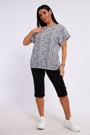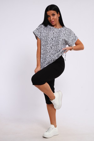 Костюм женский футболка и бриджи. Футболка свободного кроя, плечо спущенное на манжете, низ на завязках. Бриджи без карманов.