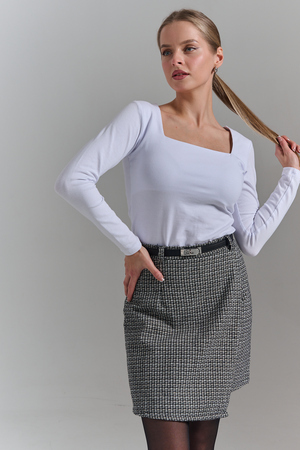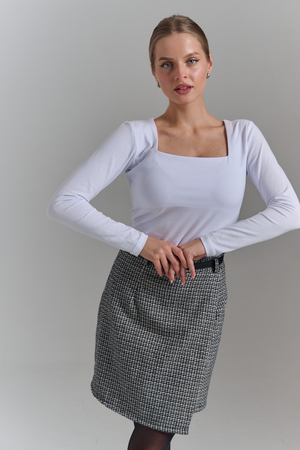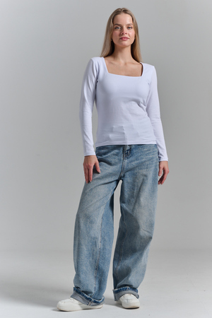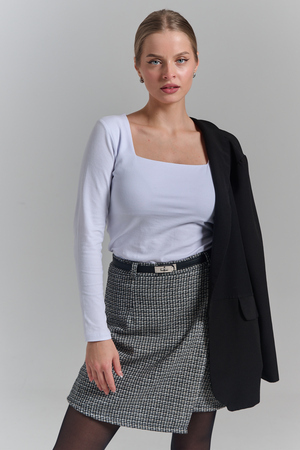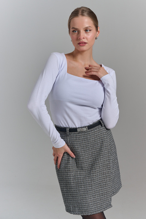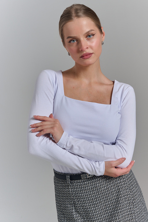 Покупатель на Ozon29.08.2025 в 08:28Обожаю такой квадратный вырез. Смотрится очень стильно. Под пиджак будет супер. С брюками, юбкой. Рекомендую. Хлопок с эластаном