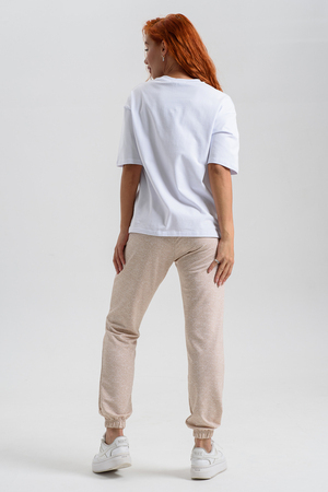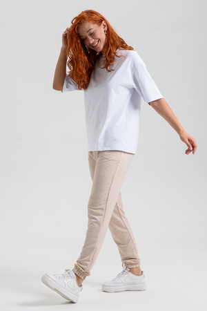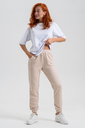 Женские джеггинсы изготовлены из мягкой приятной к телу ткани с добавлением хлопка и эластана. Высокая посадка, слегка зауженный силуэт обеспечивают свободу движений и комфорт в носке. Пояс на резинке. Карманы в боковых швах.