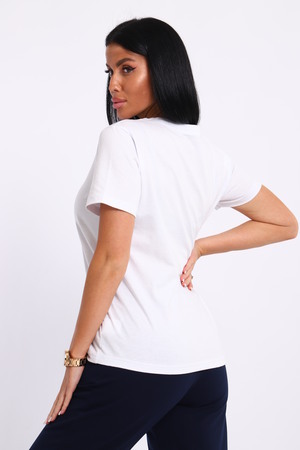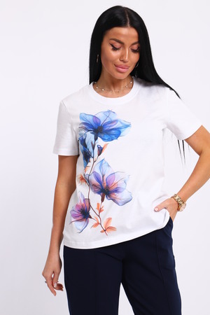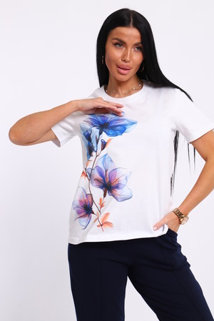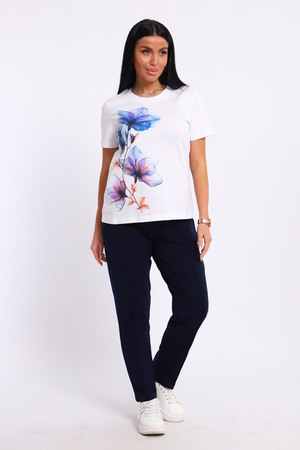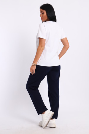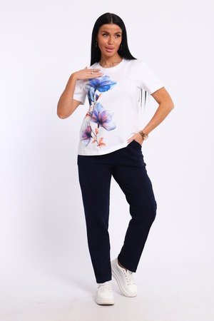 Представляем вашему вниманию современный костюм, состоящий из брюк и футболки. Брюки классические с отстроченной стрелкой спереди, двумя карманами, пояс на резинке. Футболка свободного кроя, с принтом. Костюм обладает отменными практическими характеристиками, и на долгое время сохранит свой первоначальный вид.