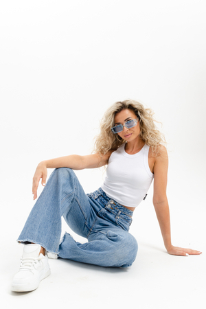 Базовый хлопковый топ укороченной длины. Выполнен из фактурной ткани в рубчик с добавлением лайкры, благодаря этому топ после стирки возвращается в прежнюю форму. Облегающий крой отлично садится по фигуре, подчеркивая её достоинства. Круглая горловина, широкие бретели, не просвечивает, топ максимально комфортный в носке.