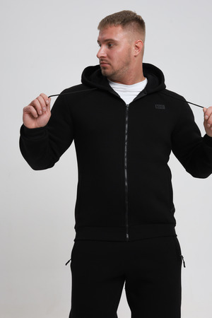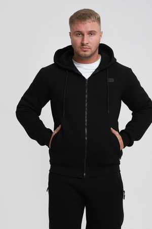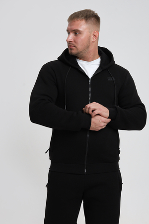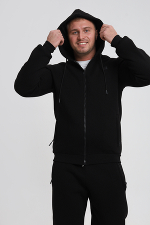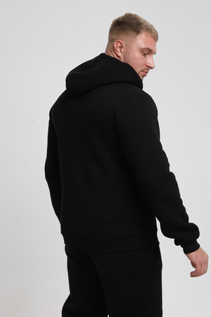 Универсальный дизайн: Классический крой и элегантный черный цвет делают эту толстовку подходящей для различных ситуаций – от повседневных прогулок до деловых встреч в неформальной обстановке.