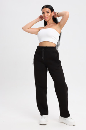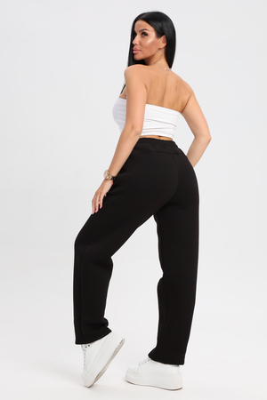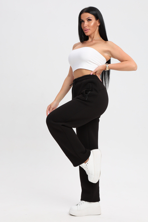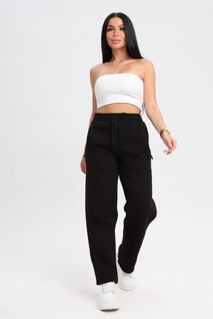 Универсальный черный цвет: Классический черный цвет делает эти брюки невероятно универсальными. Они легко сочетаются с любой одеждой и обувью, позволяя создавать разнообразные образы.