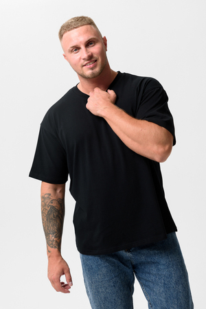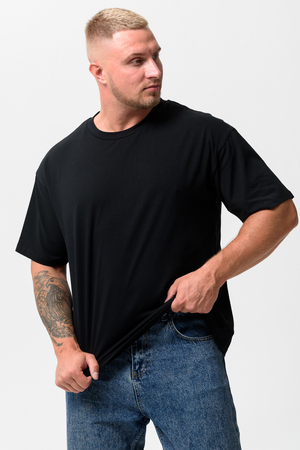 ХИТ сезона весна-лето! Стильная и модная футболка со спущенными плечом для мужчин создана, чтобы вписаться в дух времени. Она представляет собой оверсайз-модель со спущенными рукавами, которые придают ей особый шарм и оригинальность. Футболка подходит как для дома и отдыха, так и для активных тренировок. Высокая плотность 200гр/куб.м., материал кулирка с лайкрой. Широкий размерный ряд до 66 размера.