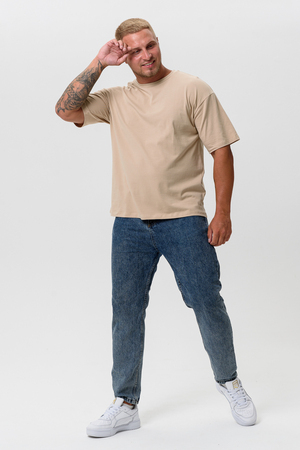 ХИТ сезона весна-лето! Стильная и модная футболка со спущенными плечом для мужчин создана, чтобы вписаться в дух времени. Она представляет собой оверсайз-модель со спущенными рукавами, которые придают ей особый шарм и оригинальность. Футболка подходит как для дома и отдыха, так и для активных тренировок. Высокая плотность 200гр/куб.м., материал кулирка с лайкрой. Широкий размерный ряд до 66 размера.