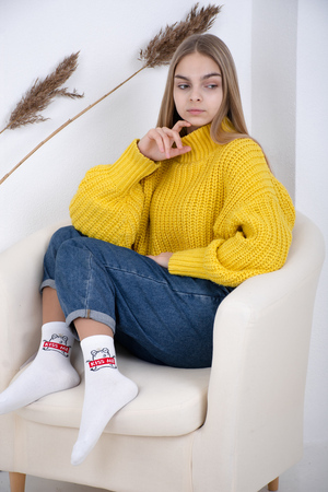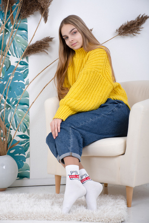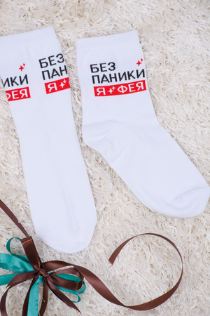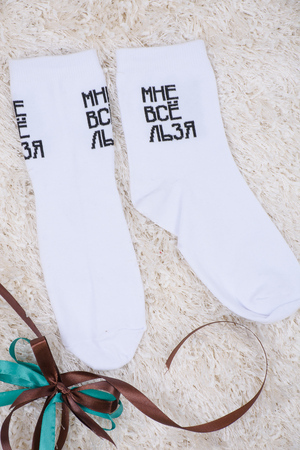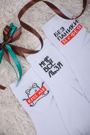 Набор оригинальных женских носочков с надписями. В упаковке 3 пары - по 1 паре каждого вида. Упаковка - пакет